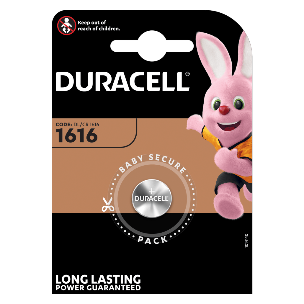 Le batterie Duracell Specialistiche a bottone al litio 1616 sono prodotte con litio ad alta purezza per fornire energia affidabile e duratura ai tuoi dispositivi specialistici. Garantiscono una durata fino a 10 anni se correttamente conservate nella confezione, così potrai essere sicuro di avere le tue batterie pronte quando ne avrai bisogno. Per aiutare ad assicurare la sicurezza dei tuoi bambini, sono state progettate in una confezione Baby Secure: doppio blister a prova di manomissione impossibile da aprire per mano di un bambino senza forbici. Sono adatte ad essere usate in chiavi telecomando, piccoli telecomandi, bilance, accessori da abbigliamento, sensori, dispositivi medici (glucometri, termometri digitali), dispositivi sportivi (monitor per frequenza cardiaca, accessori per biciclette).